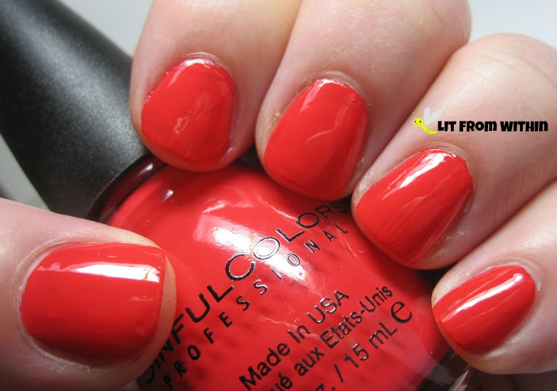 I started off with this crazy bright tomato red, Sinful Colors Energetic Red.