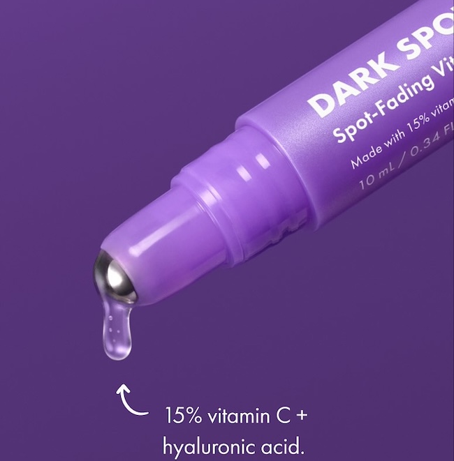 Dealing with post-blemish dark spots? Fade ‘em fast with this serum that features 15% vitamin C plus hyaluronic acid. Use it 2-3x daily to see results in as little as one week. With a twist-and-go applicator and stainless-steel rollerball tip, it’s easy to apply it anytime, anywhere.