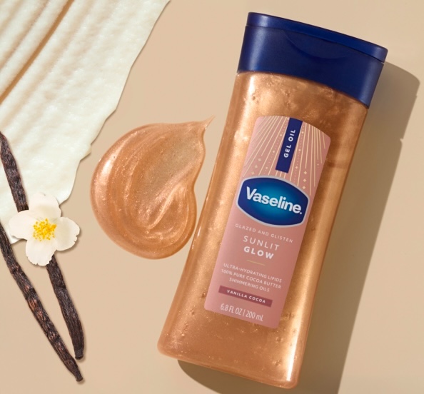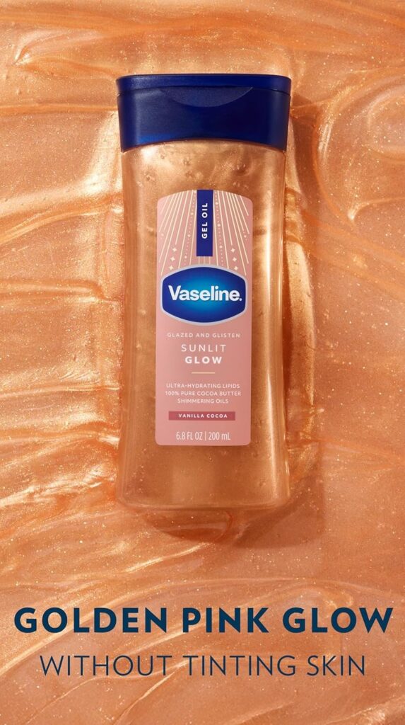 Vaseline Glazed & Glisten Shimmering Gel Body Oil – Sunlit Glow ($9)