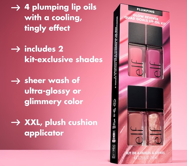 e.l.f. Glow Reviver Plumping Lip Oil Kit, Nourishing Tinted Lip Oils, 4 Shades ($16)