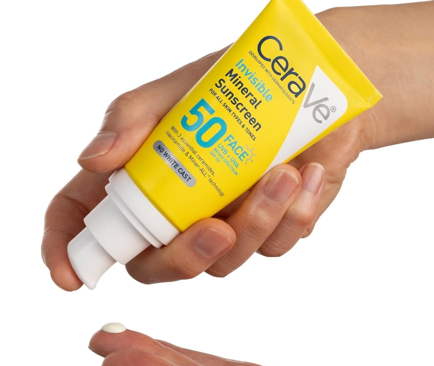 CeraVe Invisible Mineral Sunscreen SPF 50 is available for purchase at Amazon.com, Target, Ulta Beauty for $15.99